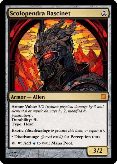 Armor Value: 3/3 (reduces physical damage by 3 and elemental or mystic damage by 3, modified by penetration).