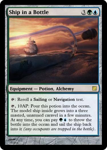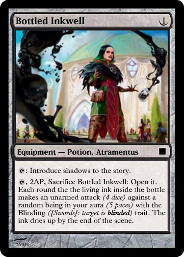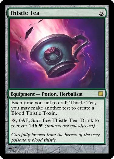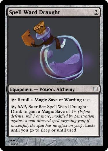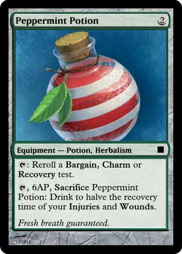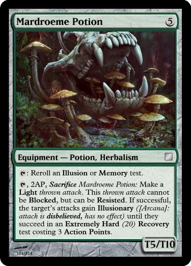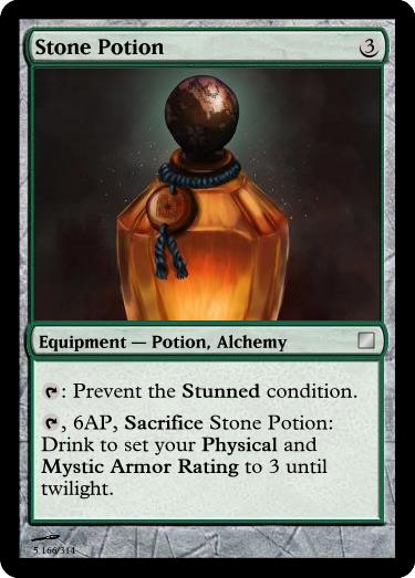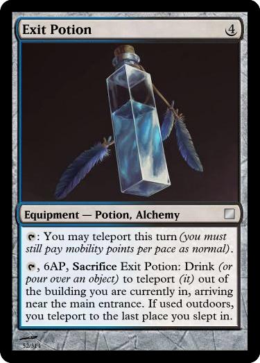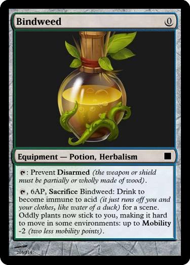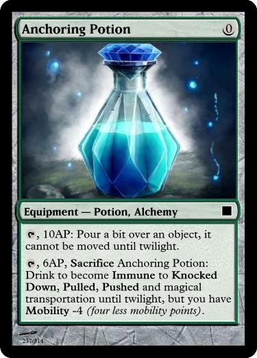 , 6AP, Sacrifice Anchoring Potion: Drink to become Immune to Knocked Down, Pulled, Pushed and magical transportation until twilight, but you have Mobility -4 (four less mobility points).