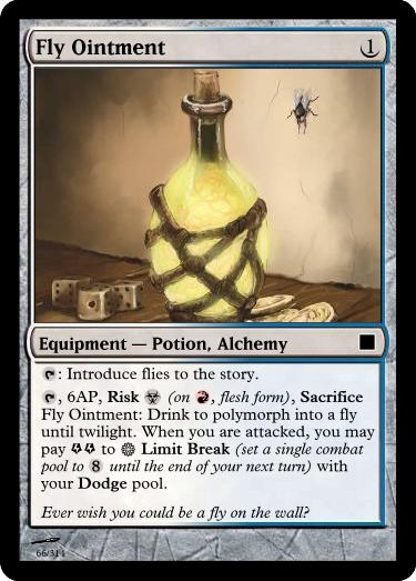 , 6AP, Sacrifice Willow Potion: Drink to increase your Size by [+1/2] until the end of the scene (a size advantage may give you a bonus die in some situations).