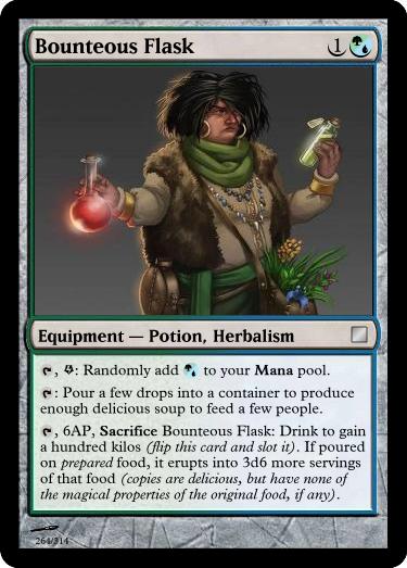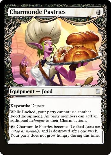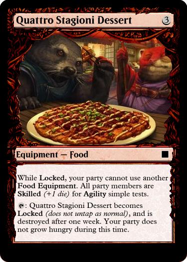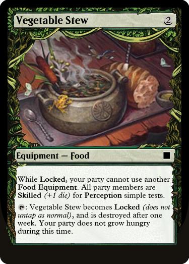 : Vegetable Stew becomes Locked (does not untap as normal), and is destroyed after one week. Your party does not grow hungry during this time.