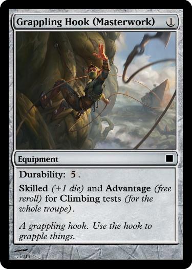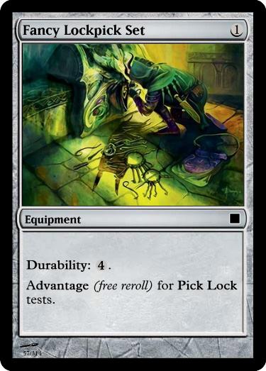 While Locked, your party cannot use another Food Equipment. All party members are Skilled (+1 die) for Toughness tests. However, each time a {Cups} Damage Trump is revealed by a party member, they become Drunk.