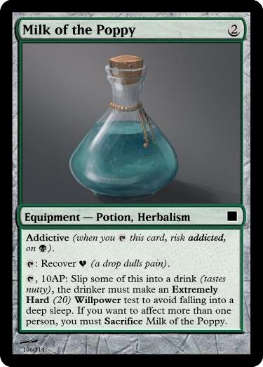 , 6AP, Sacrifice Acumen Potion: Drink to become Skilled (+1 die) for Intelligence and Perception tests until twilight.