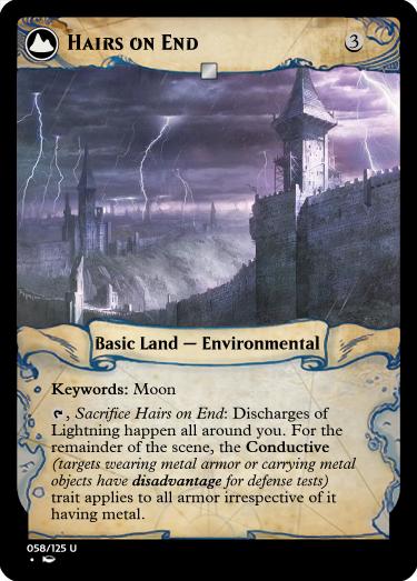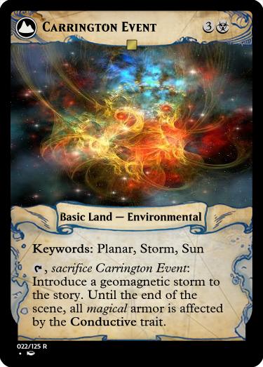 , sacrifice Carrington Event: Introduce a geomagnetic storm to the story. Until the end of the scene, all magical armor is affected by the Conductive trait.