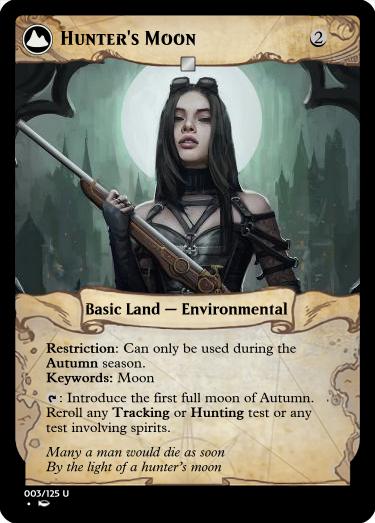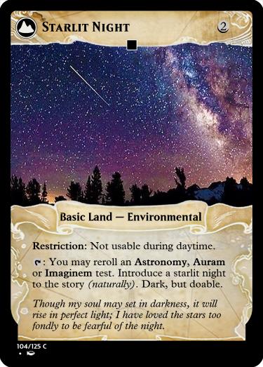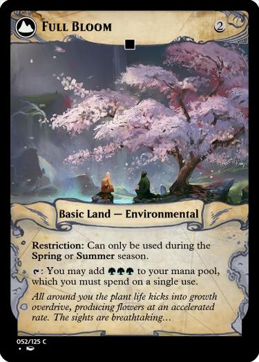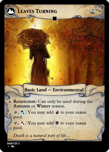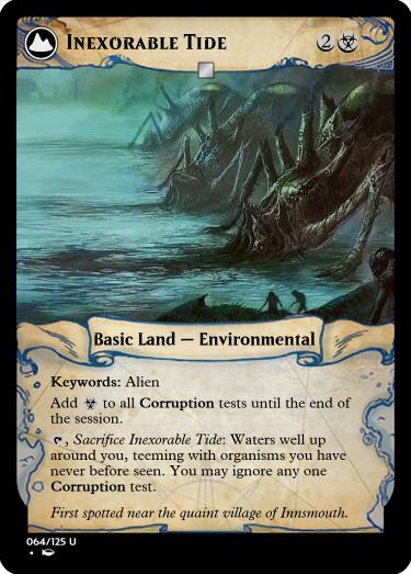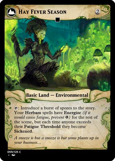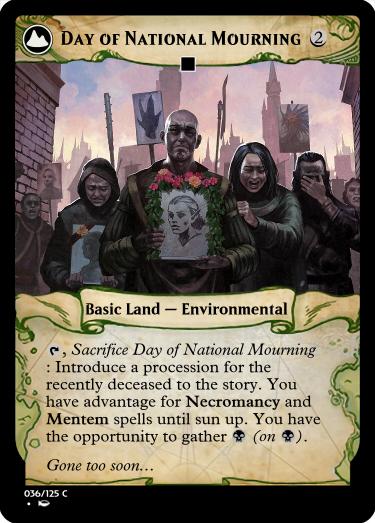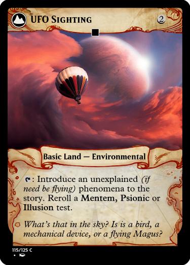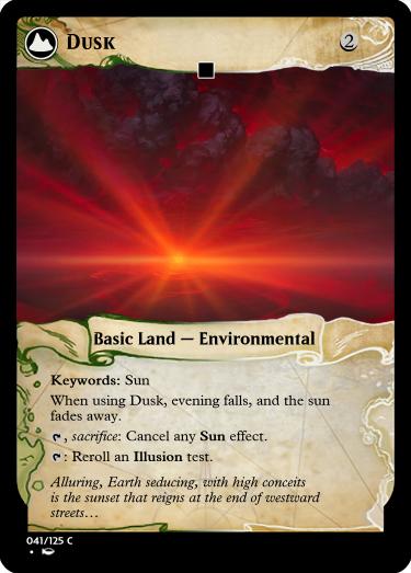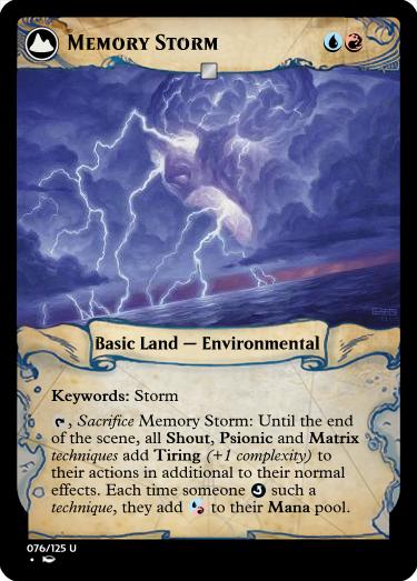 , sacrifice The Longest Time: Introduce a feeling of uncertainty to the story. Use an effect of another Environmental Land you have slotted without needing to pay the cost. If this effect would gather Mana or is an effect that can only happen once each session, you might attract the attention of a Timekeeper.
