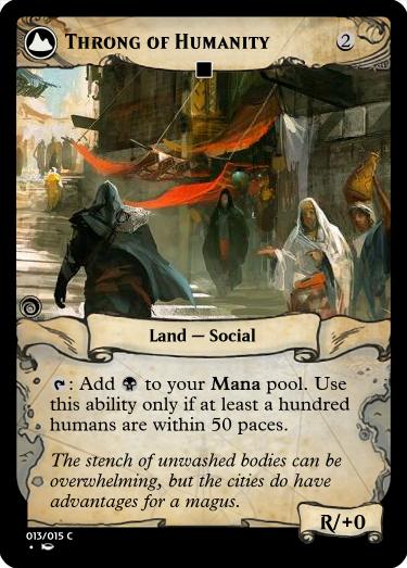 to your Mana pool. Use this ability only if at least a hundred humans are within 50 paces.
