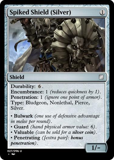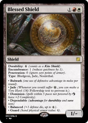 Encumbrance: 1 (reduces quickness by 1). Decreased by 1 with True Faith.