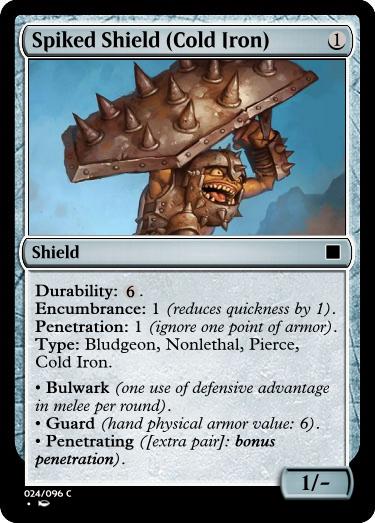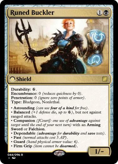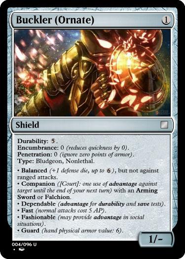 • Guard (hand physical armor value: 6). Also protects your arm on your shield side.