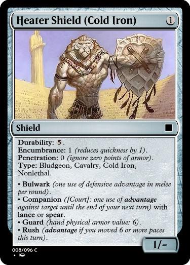 • Companion ([Court]: one use of advantage against target until the end of your next turn) with an Arming Sword or Falchion.